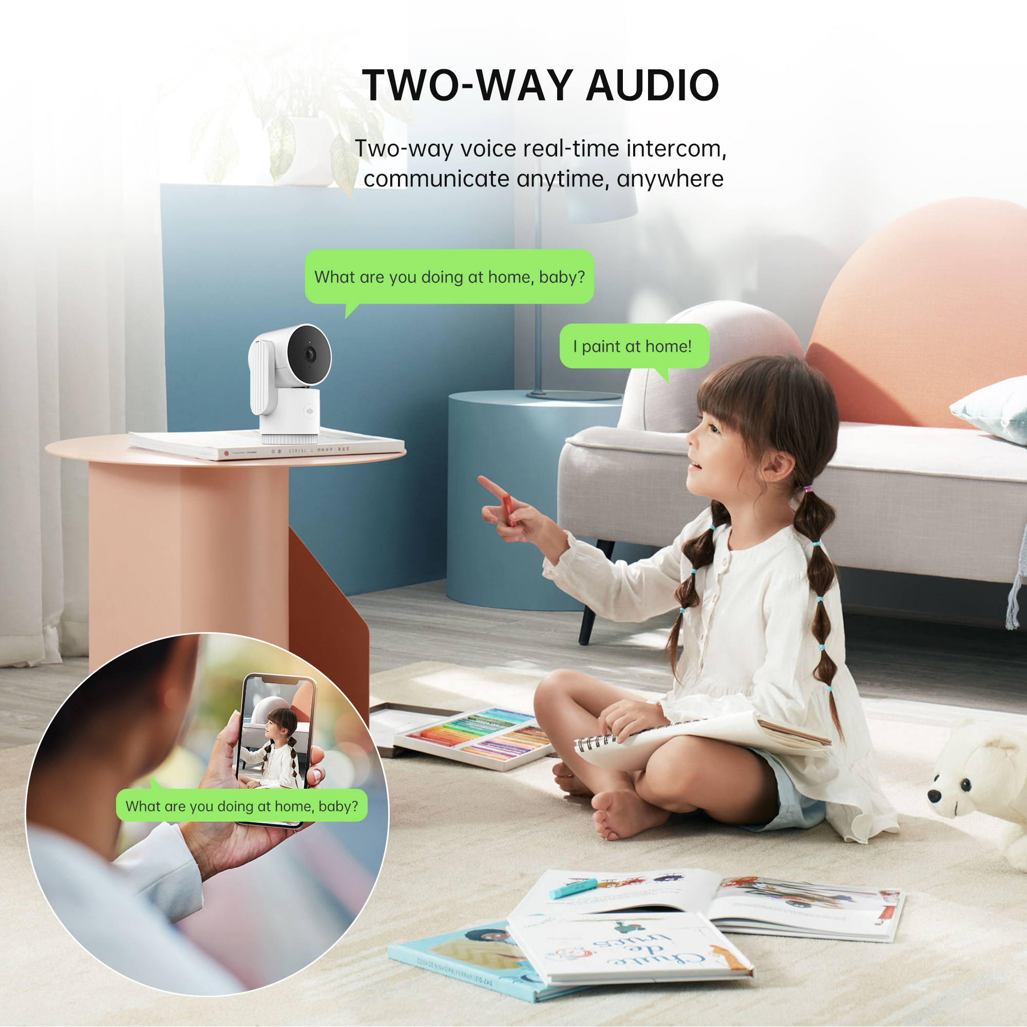 ● Two way voice real-time intercom, can listen and speak, communicate freely;